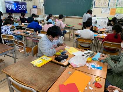 3月16日(水)4時間目、4年2組は図工で飛び出すメッセージを作っていました。