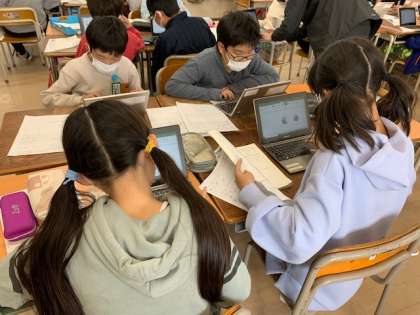 3月17日(木)3時間目、4年2組は総合で、パソコンを使って円グラフを描いていました。