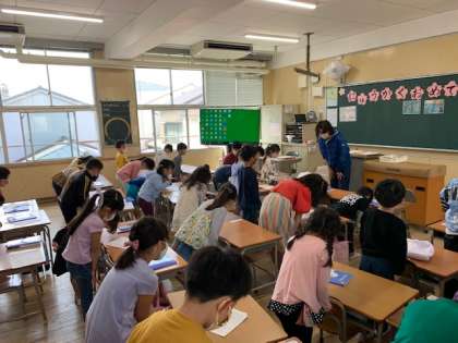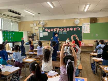 4月11日(月)2時間目、1年1組は学習の始まりのあいさつの仕方を練習していました。