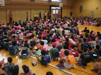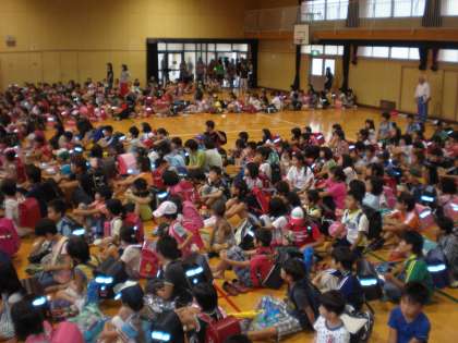 今日(9月4日)は、5時間目に台風接近を想定した避難訓練と集団下校を実施しました。