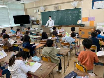 4月12日(火)1時間目、2年2組は国語で「たけのこ ぐん」という詩を学習していました。