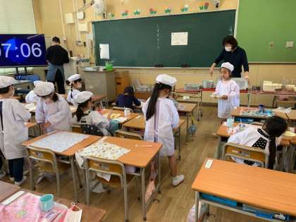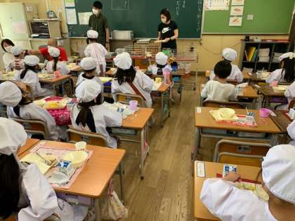4月12日(火)1年生が給食をおいしそうに食べていました。