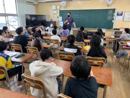 4月13日(水)1時間目、6年1組は外国語科で新しいC−NETの先生に質問をしていました。