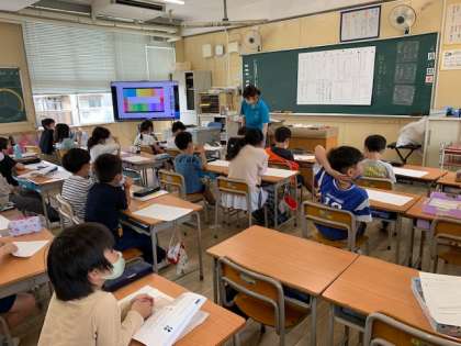 4月14日(木)2時間目、3年1組は国語で「何をしているのかな」を学習していました。話を上手につないでいるところを探していました。
