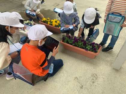 4月15日(金)1時間目、3年2組は理科で花等の観察をしていました。よく見ると、「春の生き物ビンゴ」をしていました。9つのマスに見つけた春の生き物をかいていました。教室へ戻ってからビンゴをするようです。