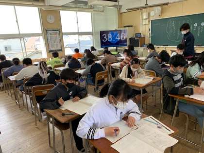 4月18日(月)1時間目、6年生は大阪府の学力テスト「すくすくウオッチ」のわくわく問題(教科横断型問題)に取り組みました。