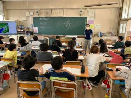 4月18日(月)4時間目、4年1組は社会科で大阪府の位置や形について学習していました。黒板には方位が書かれていましたので、大阪府の北や南、東西について確認しながら特徴を見つけていました。