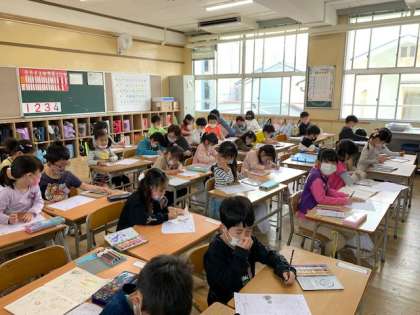 4月19日(火)1時間目、1年2組は国語でひらがなの「へ」を学習していました。
