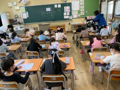 4月20日(水)1時間目、1年1組は国語でひらがなの「い」を練習していました。
