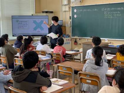 4月20日(水)1時間目、6年2組は算数で、線対称な図形の特徴を調べていました。