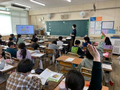4月20日(水)1時間目、5年1組は算数で図形の合同について学習していました。