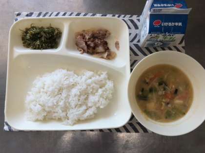 じゃこピーマンはよく加熱されていて苦みが減り、1年生も食べやすかったようです。