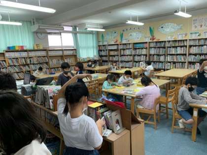 4月21日(木)3時間目、3年2組は図書の時間で本を選んで読んでいました。