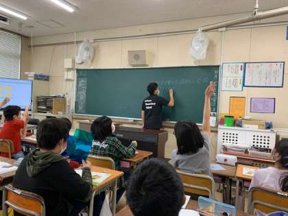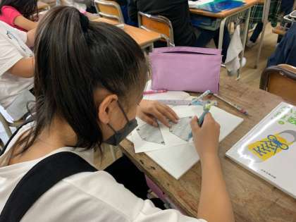 4月21日(木)4時間目、5年2組は算数で図形の合同について学習していました。辺の長さや角の大きさを測っていました。