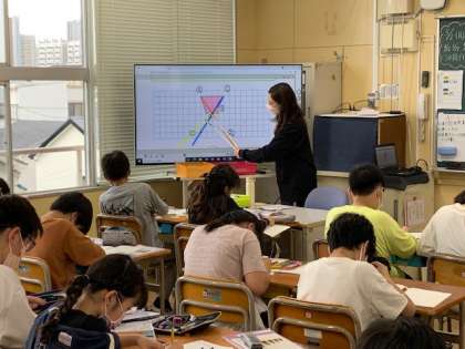 4月26日(火)3時間目、6年1組は算数で点対称な図形のかき方を学習していました。
