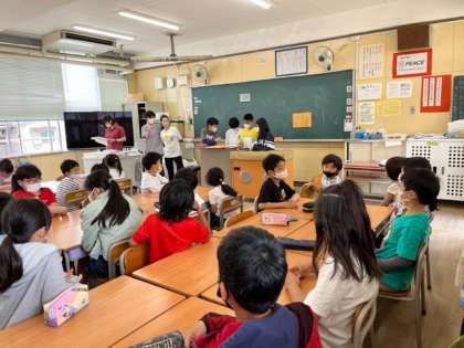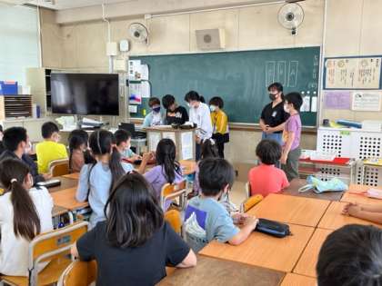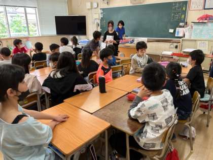 5月6日(金)3時間目、たてわり班にわかれてなかよし集会を行いました。たてわり班で自己紹介をしたり、班長さんがあいさつをしたりしました。