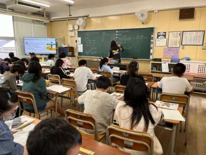 5月9日(月)5時間目、6年1組は算数で、「文字を使った式に表して答えを求めよう」というめあてで問題を解いていました。