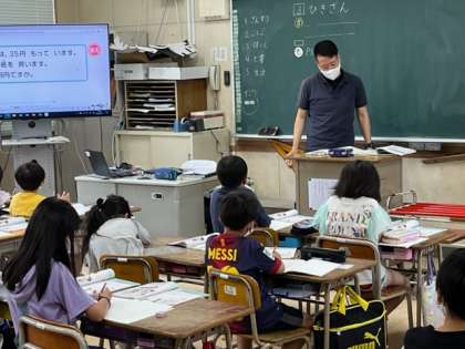 5月11日(水)1時間目、2年生は遠足が延期になったけれど、気持ちを切り替えて勉強していました。1組は国語で漢字の練習をしていました。2組は算数でひき算の問題を考えていました。