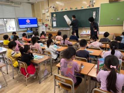 5月11日(水)1時間目、1年2組は音楽で校歌を練習した後、「うたって なかよし」をしていました。「こいのぼり」の歌がかかると、「子どもの日は終わった。」と言う子がいましたが、元気よく歌っていました。