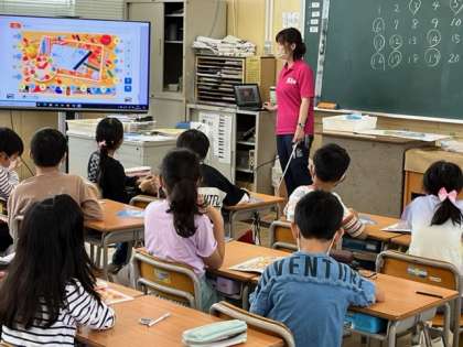 5月11日(水)1時間目、3年1組は外国語活動で「How many」の学習をしていました。
