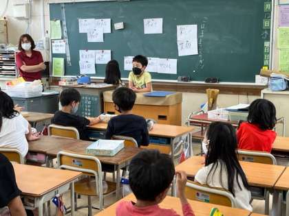 5月12日(木)3時間目、4年1組は粉浜まつりのスローガンを考えていました。