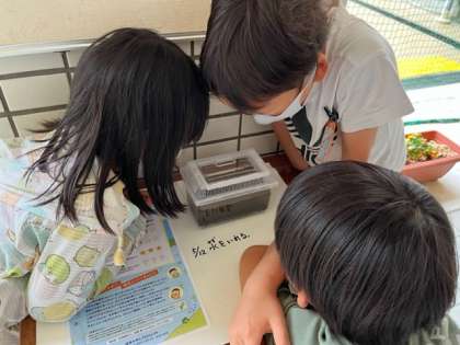 5月12日(木)住吉大社からいただいた「なぞの土」に水を入れました。土の中から生き物が生まれてくるかもしれないので、子どもたちは必死で見ています。さて、今年はどんな生き物が生まれてくるのでしょうか?楽しみですね。