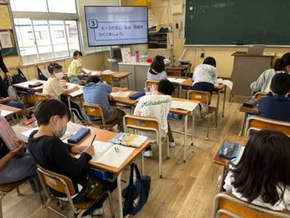 5月13日(金)3時間目、3年2組は算数で6÷3の式になる問題をつくっていました。