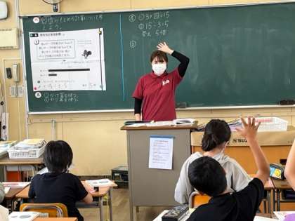 5月18日(水)1時間目、3年2組は算数で何倍か求める計算について考えていました。