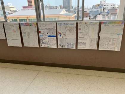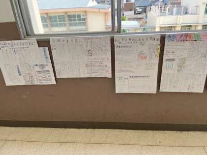 5月19日(木)6年1組の前の廊下に防災ポスターが貼られていました。発表を終えて貼っているのでしょうか。