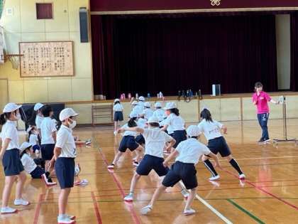5月23日(月)3時間目、3年1組は体育で、反復横跳びをしていました。