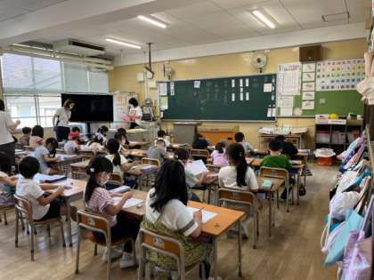 5月24日(火)1時間目、1年1組は国語でひらがなの「れ」を学習していました。