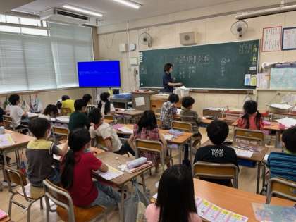 5月27日(金)1時間目、2年1組は国語で新出漢字を学習していました。