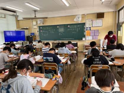5月27日(金)1時間目、6年2組は算数で辺の長さが分数の時の面積の求め方を考えました。