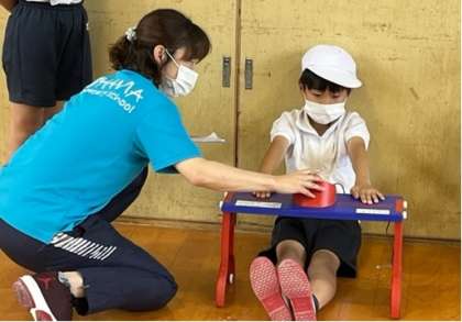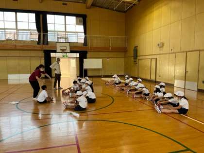 6月2日(木)1時間目、3年生は体育で長座体前屈の測定をしていました。待っている人はストレッチをして体を伸ばしていました。
