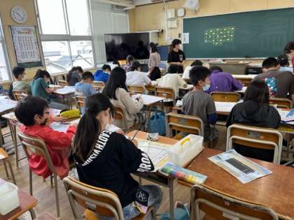 6月6日(月)2時間目、6年1組は図工で絵に色をぬっていました。