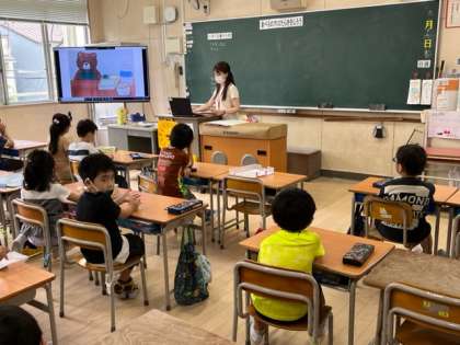 6月16日(木)3時間目、2年1組は栄養指導で「食べもののはたらき」について学習しました。