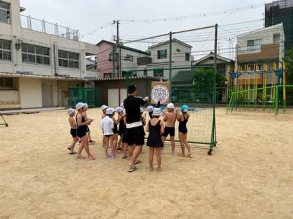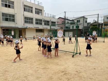 6月16日(木)3時間目、1年生は生活科で水を使った遊びをしていました。後半はしゃぼんだまを作っていました。