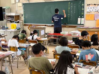 6月20日(月)2時間目、2年2組は国語で「名前を見てちょうだい」の牛の場面を読み取っていました。