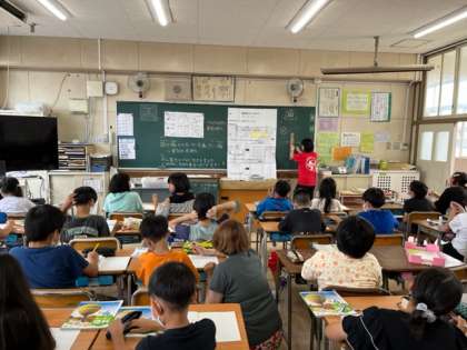 6月20日(月)6時間目、4年1組は理科で回路図を書いていました。