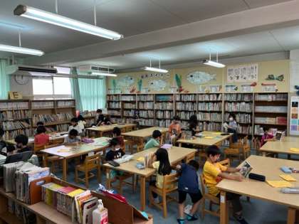 6月22日(水)4時間目、2年2組は図書の時間で、本を探し、読んでいました。