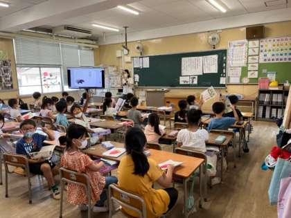 6月24日(金)1時間目、1年1組は国語で「どう やって みを まもるのかな」を学習していました。