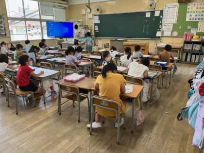 7月1日(金)1時間目、1年1組は国語でかたかなの「テ」を学習しました。
