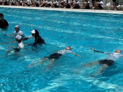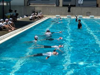 7月1日(金)3時間目、5年生が着衣泳を行いました。あおむけに水に投げ出された時は、大の字になって呼吸ができるようにする練習をしていました。その後、うつ伏せで水に投げ出された時は、そこからあおむけになるように先生が話していました。水難に合わないことが一番ですが、万が一の時は自分の命は自分で守れるようにしたいものですね。