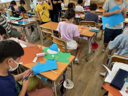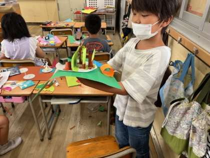 7月4日(月)2時間目、3年2組は図工の作品を仕上げていました。一人一人工夫して作っていました。