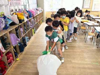 7月5日(火)1時間目、1年2組は国語で「おおきな かぶ」を演じていました。