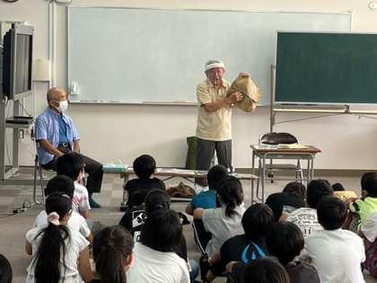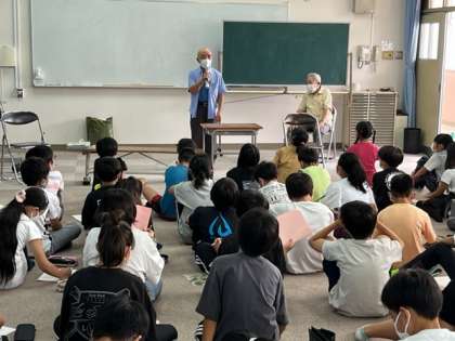 7月5日(火)3・4時間目、6年生は平和学習で地域の方から疎開や戦後すぐの状況や焼夷弾が落とされた時の話を聞きました。子どもたちは真剣に聞いていました。貴重な写真や戦争中に食糧の買い出しに使っていたリュックも見せていただきました。