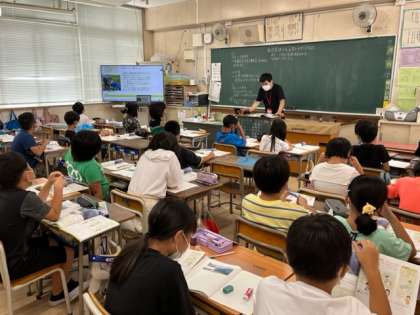 7月6日(水)1時間目、4年1組は社会科で水源を守る取り組みについて学習していました。