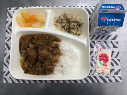 今日の献立は、令和3年度学校給食献立コンクールで野田小学校のみなさんが考え、優秀賞をとった作品でした。「夏野菜をたくさん食べることで、夏バテを予防できるように」と考えられています。