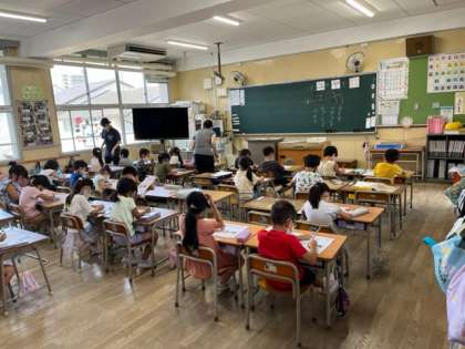 7月7日(木)1時間目、1年1組は国語でかたかなの「ヤ」と「ユ」を練習していました。