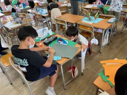 7月8日(金)5時間目、3年1組は図工で作品を仕上げていました。